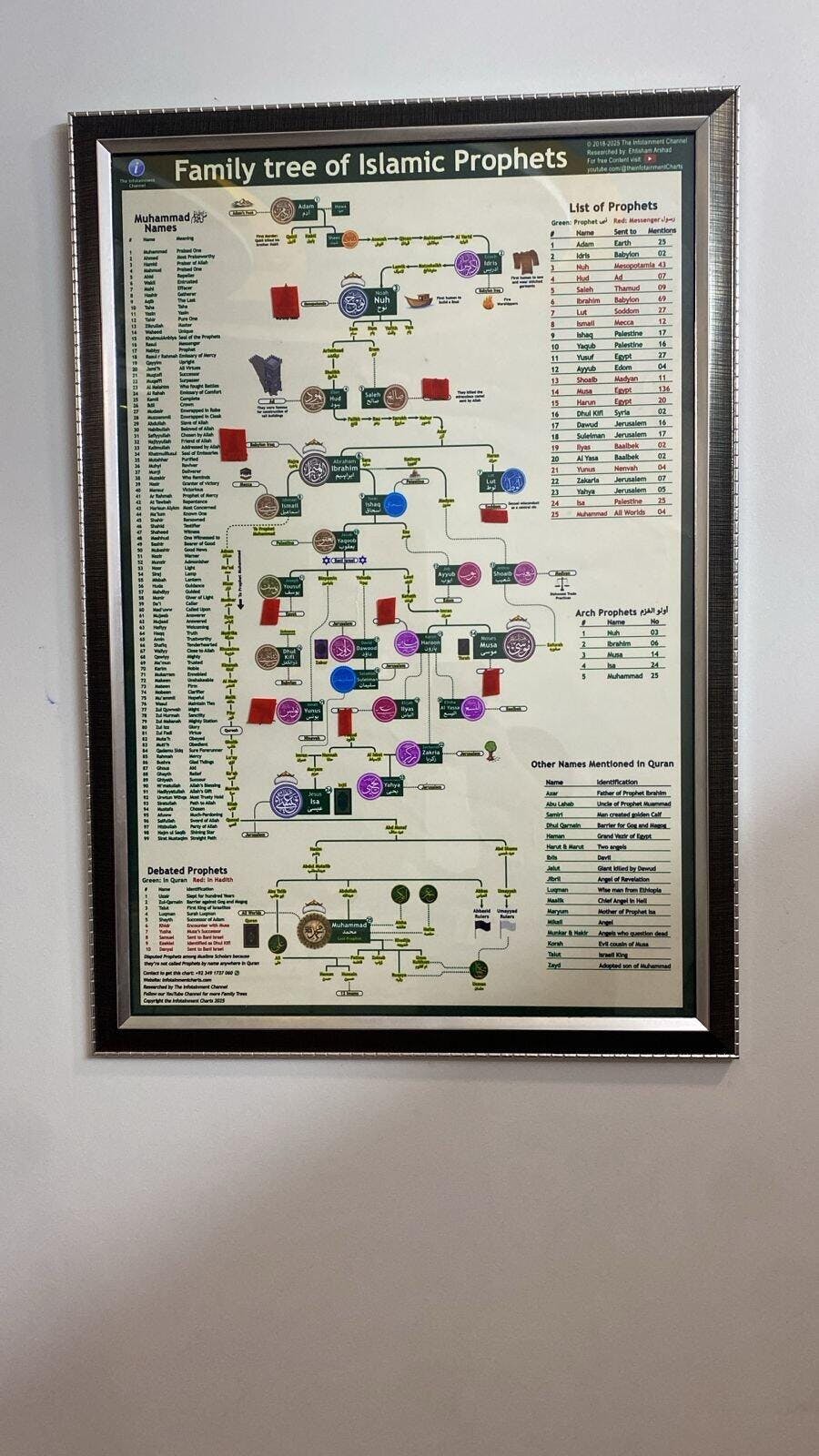 Description: This chart shows the Prophets Family Tree. It covers all the 25 Prophets along with the Family Tree of Prophet Muhammad PBUH. This Family Tree starts from Adam and ends at Last Prophet Muhammad PBUH.